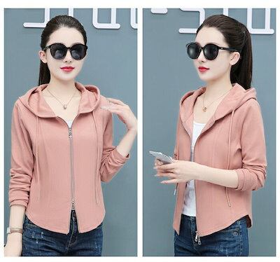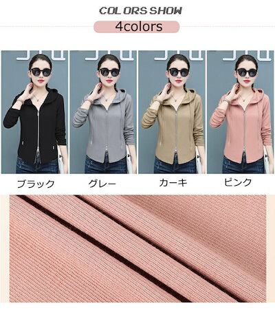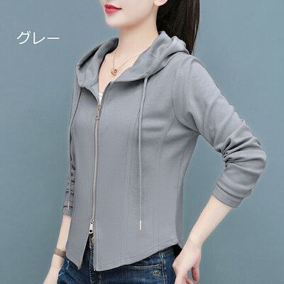 パーカー レディース 薄手 秋 春 細身 フード付き アウター ゴルフウェア ファスナー 長袖 フード ジップアップ スウェット 薄手 無地 大人 おしゃれ カジュアル ダブルジップ グレー ピンク