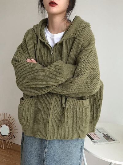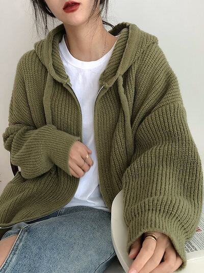 超人気パーカーニットセーターとのデザイン感長袖肩出し衛衣レディースファッション新型ニットセジャージ-@パーカー