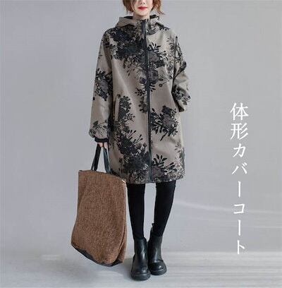 フード付コート アウター レディース ジャケット チェスターコート ステンカラーコート ワンピース オーバーサイズ 冬 長袖 ロング プリント トレンチコート Aライン 体型カバー きれいめ 大きいサ