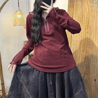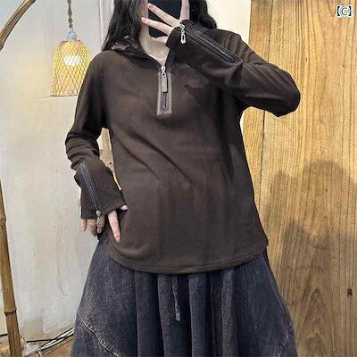 レディース カジュアル パーカー エキゾチック 冬 レトロ 光沢 フード付き ジャー マン ベルベット カラー ジッパー シャツ