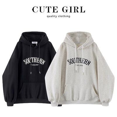 ジャケット トップス パーカー レディース カジュアル 快適 レター プリント ベルベット フード付き スウェットシャツ 女性 冬 オーバー サイズ