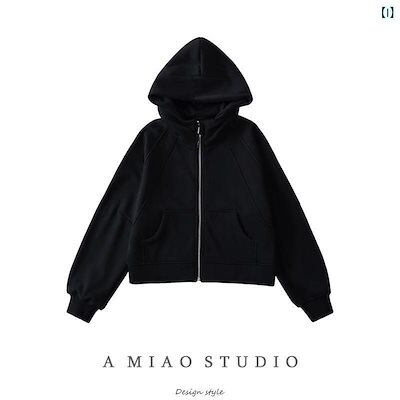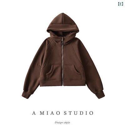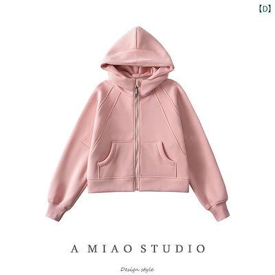 レディース パーカー ベルベット 厚手 フード スウェットシャツ アメリカン レトロ 秋冬 女性 ジッパー ショート コート