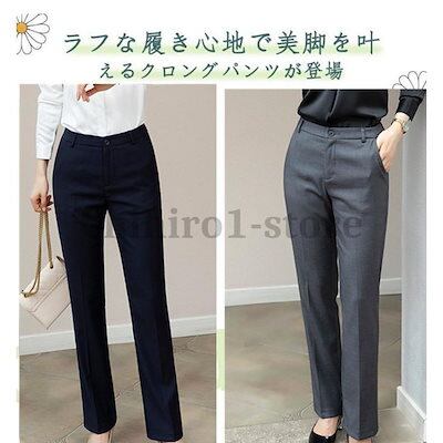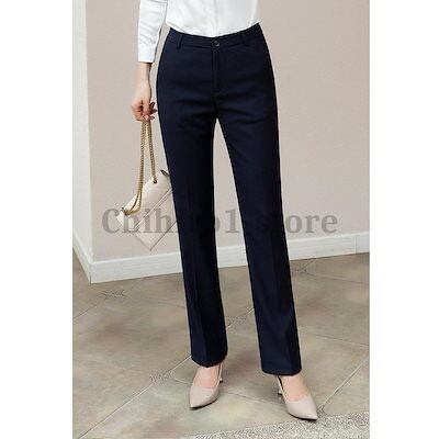 スラックス ビジネス フォーマル パンツ レディース スーツパンツ ストレートパンツ 美脚 オフィス パンツ ストレート ロング 黒