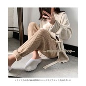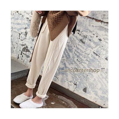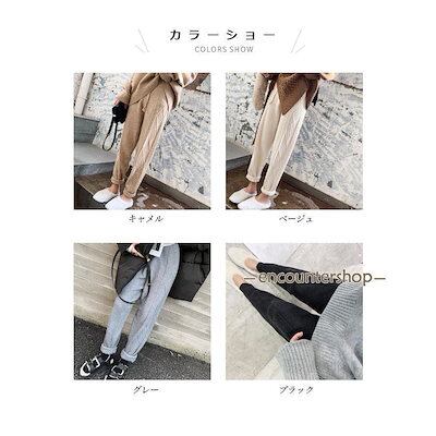 ニットパンツ レディース テーパードパンツ 厚手ニット 9分丈 レトロ ケーブル編み サルエルパンツ ニット ボトムス ウエストゴム 秋冬 ズボン