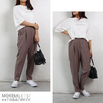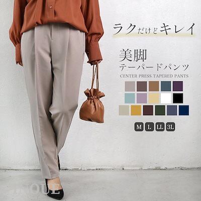 テーパードパンツ レディース スラックス ウエストゴム センタープレス パンツ ハイウエスト フォーマル オフィス カジュアル きれい目