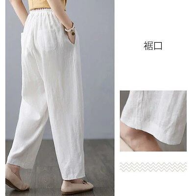 作トレンドボトムステーパードパンツストレートサルエルパンツウエストゴムレディースカジュアルポケット付きゆったりン綿九分丈薄カジュアル