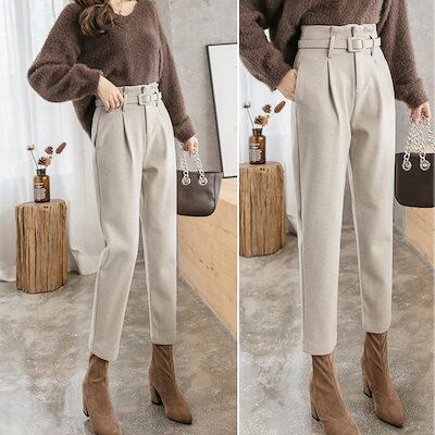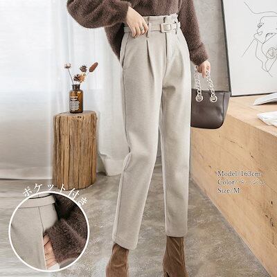 テーパードパンツ レディース 秋冬 スーツパンツ ハイウエスト ベルト付き ストレートレッグパンツ