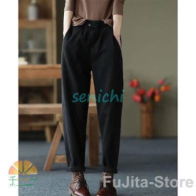 チノパン レディース テーパードパンツ 裏ボア 裏起毛 ウエストゴム カジュアル 秋冬 厚手 ロング丈 細身 暖かい 旅行 通勤 通学 オフィス 着痩せ 無地