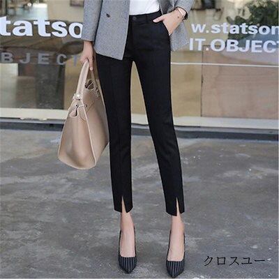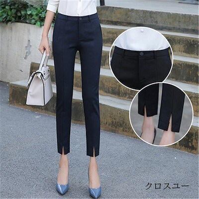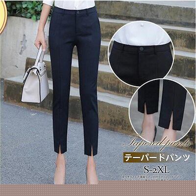 テーパードパンツ レディース ボトムス スラックス 九分丈 ビジネス ハイウエスト 無地 カジュアル 体型カバー 結婚式 入学式 ファション