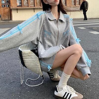今っぽいスポーティーなルック 2024 春夏 上下2点セット トップス お出かけ 羽織り ショート丈フルラウンドヘムミニ丈ボトムスストレート系ゆったりレディーススタイルアップワイドお出かけトラック