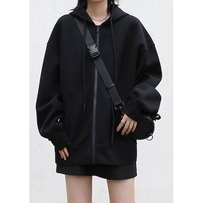 【本日限定】ジップ韓国 パーカー 裏起毛 韓国 春秋の新作カジュアル連帽シルエット厚手衛衣カーディガンジッパーコート女性用ゆったりミディアム丈 秋アウター 韓国 パーカー レディース