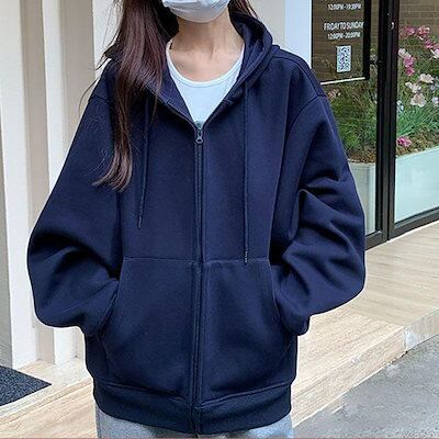 【 迅速な出荷 】韓国 パーカー レディース 春春秋のけだるい風ins潮加絨毯ゆったりカーディガンジップ長袖 韓国 秋アウター ジップ韓国 パーカー 裏起毛