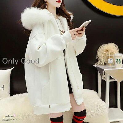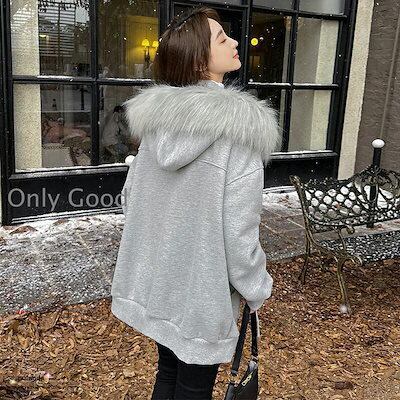 裏起毛 パーカー オーバーサイズ ファー付き ジップアップパーカー アウター レディース ファー フェイクファー フード付き スウェット ブルゾン 大きいサイズ