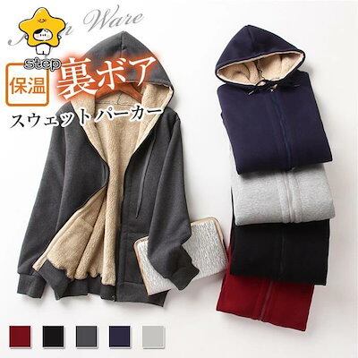 裏ボア パーカー スウェット ジャケット レディース 裏起毛 アウター フリース ジップ カーディガン ルームウェア あったか 裏フリース 無地