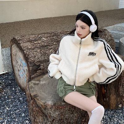 2024 秋冬 韓国 かわいい レディース ハイネック スタンドネック アウター ブルゾン お出かけ 長袖セクシーシルエットトップスサイド冬カジュアルファッション系サイズお出かけフル丈トラック