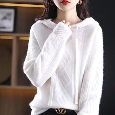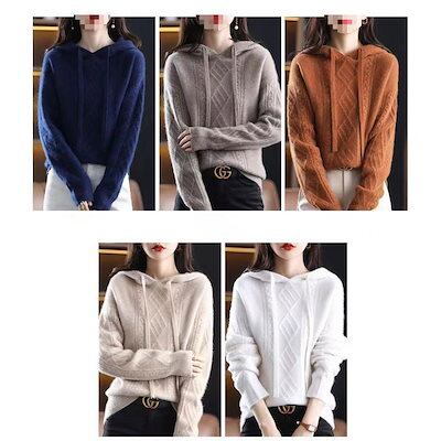 ニットパーカー レディース セーターシャツ ケープル編み フード付き ゆったり 韓国風 プルオーバー Vネック プリント 無地 オシャレ でかけ デイリー