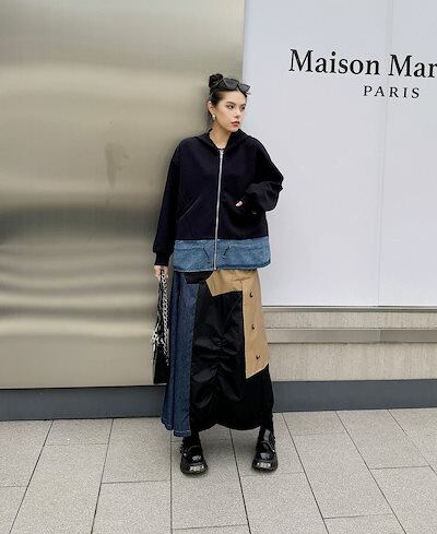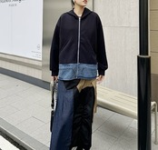 【J.Fashion】 2024秋新品 デニムドッキング ファスナー パーカー スウェット トレーナー レディース ジャケット アウター メガ割