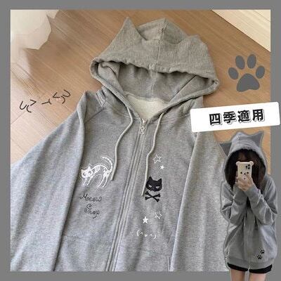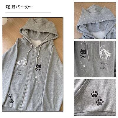 猫耳 パーカー レディース ジップパーカー プリント 長袖 プルオーバー 地雷系 量産型 ゆったり フード付き 原宿系 学院風 可愛い コート 森ガール おしゃれ 韓国ファッション プルオーバー おし