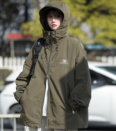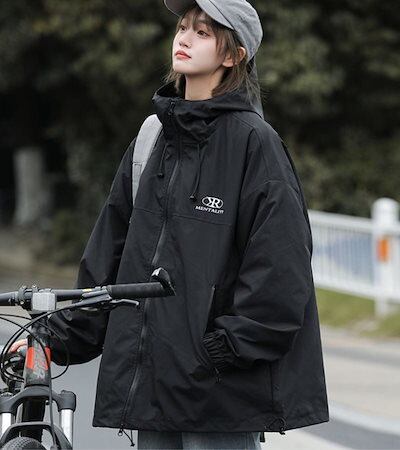 スタイルアップ シルエット フーディー ロゴ ブルゾン アウター フード付き レディース パーカー サイズ ゆったり ライク カジュアル ストリート フル ファッション カジュアル きれいめ夏秋冬