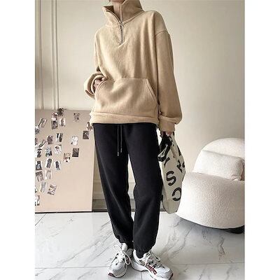 トレーナー レディース 裏起毛 トップス ック 長袖 無地 ジッパー パーカー カジュアル ゆったり シンプル 韓国風 かっこいい ファションマウンテンパーカー