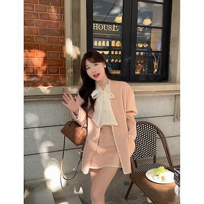 2024秋冬 レディース アウターきれいめ 韓国っぽ トップス&ミニスカートショート OL 通勤丈オフィスコートファッション系女っぽカジュアルロング大人羽織りフレンチ上下コーデ春襟