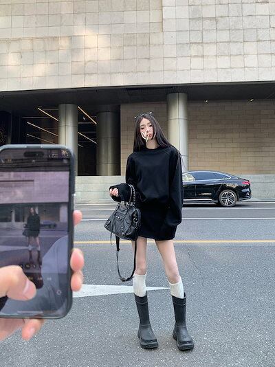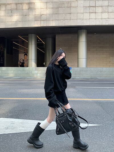 2024 秋冬 韓国 かわいい レディース 無地 普段使い長袖トップスレトロ上下セット 黑白パーカーブルサイズ丈春カジュアルスポーツファッション系通学学生袖お出かけアップシルエットミニトラック羽織り