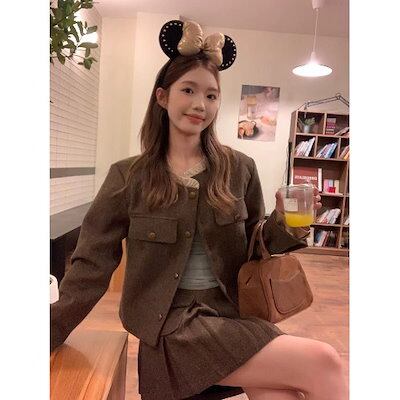 2024秋冬 セットアップ レディース チエレガント着回し きれいめ 韓国っぽ トップス ショートミニ OL 通勤丈 オフィスコートファッション系女っぽ カジュアル大人っぽ 羽織りフレンチ 型春襟