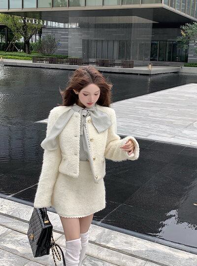 2024秋冬 セットアップ レディース チエレガント きれいめ 韓国っぽ トップス ショート丈ミニ OL 通勤 オフィスコートファッション系女っぽ カジュアル大人っぽ 羽織りフレンチ型春上下2点