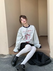 2024 秋冬 トップスバイカラー長袖TシャツかわいいK-POP黑白レディース韓国風ロゴ衣装ルーズゆったりカジュアルおしゃれサイズ袖プリントシルエットファッション系サイドシャツフット春スポーツT