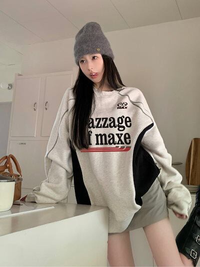 2024 秋冬 トップスバイカラー2type 裹起毛長袖TシャツかわいいK-POPレディース韓国風ロゴ衣装ルーズゆったりカジュアルおしゃれサイズ袖シルエットファッション系サイドシャツフット春スポーツT