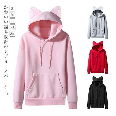 レディース トレーナー ネコ耳パーカー フード付き 裏起毛 ネコ耳パーカー トップス パーカー 中学生 猫耳 ポケット付き 春 秋 冬