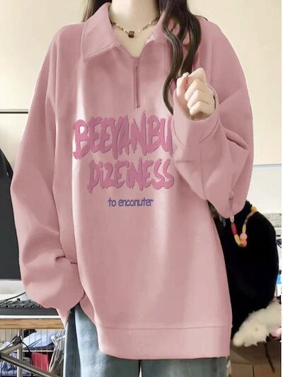 2024 秋冬 2TYPE 厚手裹起毛トップス長袖 かわいいプリントK-POPTロングレディース韓国風衣装カラールーズゆったりカジュアルハーフおしゃれサイズスリーブシルエットファッション系サイドシャツ