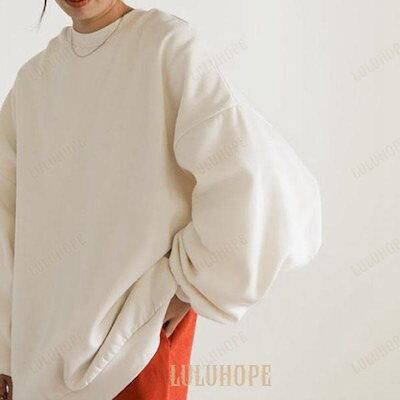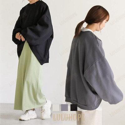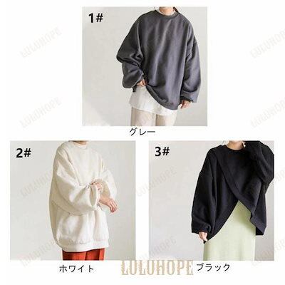 [PassionateRob0ts]プルオーバー ラウンドネック トップス スリット 長袖 レディース 厚手 裏起毛 両面着 秋冬 トレーナー デザイン
