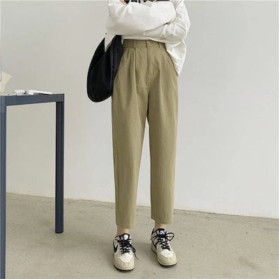 テーパードパンツ ツイル カジュアルパンツ ゆったり ハレンチパンツ レディース 春秋 ハイウエスト 薄手 九分丈 大きいサイズ ワークパンツ 韓国