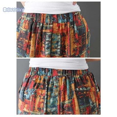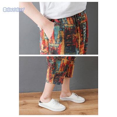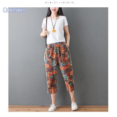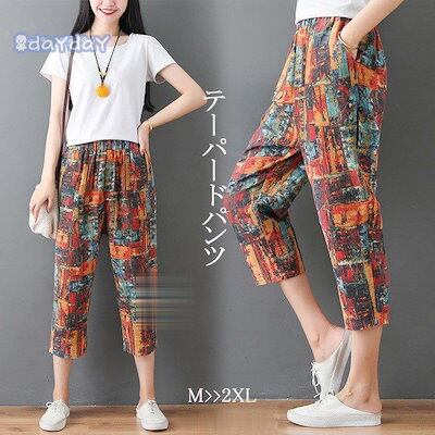 人気新品テーパードパンツ レディース ズボン クロップドパンツ ウェストゴム リネン生地 大きいサイズ 総柄 高級感 スカンツ スカーチョ 春 夏 30代 40代 50代