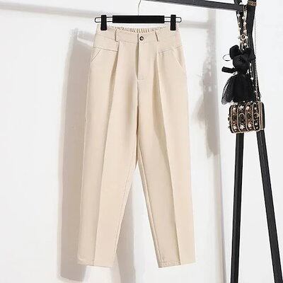 スーツパンツレディースロングパンツ無地ポケット付きウエストゴムオフィススラックス柔らかいゆったりシンプル脚夏