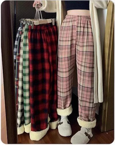 ズボンレディース大きいサイズ ふわもこ 裏起毛 スリムパンツ ファッション チェック 長いズボン ストレート スラックス ロングズボン ズボンレディース 美脚 四節適用着痩せ脚長効果