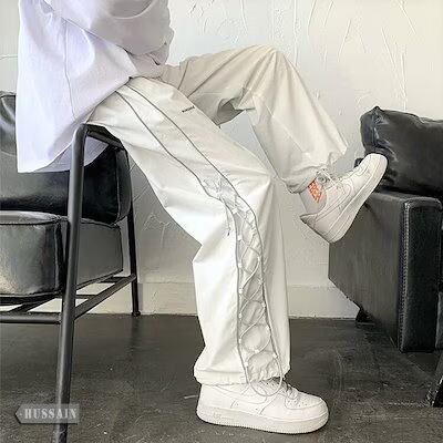 スラックスパンツ / 韓国ファッション/ゆるっとストリート お出かけ パンツ サイドライン レースアップ スポーティー ユニセックス レディース スタイルアップ 色っぽ 女っぽ カジュアル きれいめ