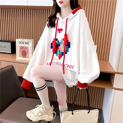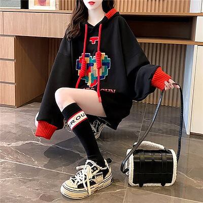 メガ割 メガ割りデザイン感 フード付き スウェット レディース 韓国 ゆったり ロングタイプ トップス福袋ゆったりスウェット