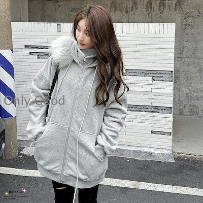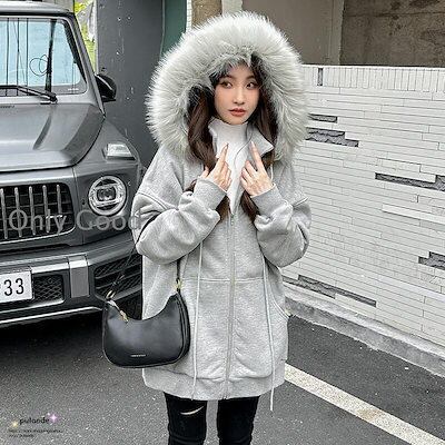 裏起毛 パーカー オーバーサイズ ファー付き ジップアップパーカー アウター レディース ファー フェイクファー フード付き スウェット ブルゾン 大きいサイズ