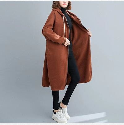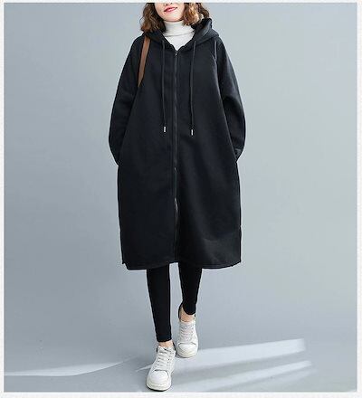 ジップアップパーカー 裏起毛 パーカー レディース ロング丈 秋 冬 ジップアップ フード付き 長袖 サイドスリット 可愛い 秋服 ロングパーカー スウェット パーカー コート アウター カジュアル