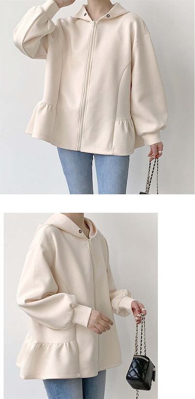 トップス パーカー ジップ 長袖 スウェット 無地 レディース フレアジップパーカー ダンボール きれいめ ジップスウェットパーカー ジップアップ フード ジップアップパーカー ライトアウター フレア