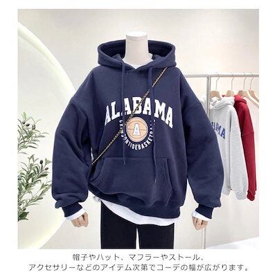 パーカー プリント 厚手 アメカジ 秋 冬 裏起毛 レディース 防寒 トップス フード付き 暖かい 保暖 保温 スウェットパーカー 長袖