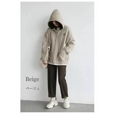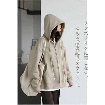 出荷が早い裏起毛 パーカー レディース トップス レディース 暖かい あったか アウター 長袖 刺繍 無地 ビッグサイズ ジップアップパーカー オーバーサイズ ふわふわウ