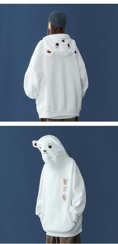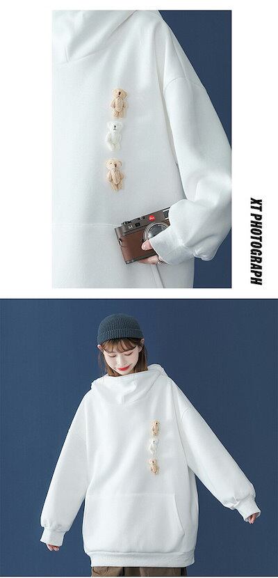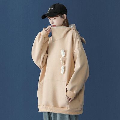 パーカー レディース メンズ 熊 カップル かわいい ロング トレーナー 裏起毛 韓国ファッション 萌え 動物 熊 トップス 森ガール ゆったり スウェット カジュアル フード付き プルオーバー 大き