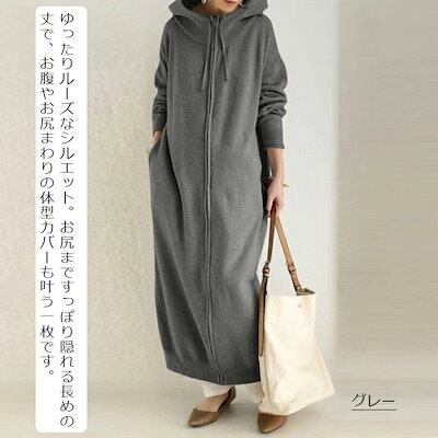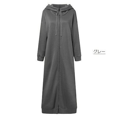 パーカーワンピース ロング 長袖 フード付き レディース カジュアル ロングパーカー アウター ロングコート ハイネック コート スウェット ジップ 長い フード 大きいサイズ 体型カバー きれいめ