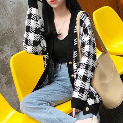 ニットカーディガン レディースチェック柄マウンテンパーカー