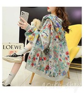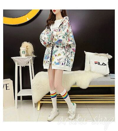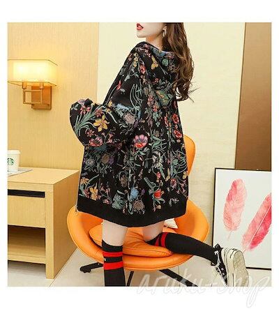 3色 パーカー レディース ルーズ フード付き トップス 長袖 おしゃれ ジップアップ 花柄 カジュアル 可愛い ラフ ゆったり こなれ感 XL 2XL 3XL コーデ 通学 学生 通勤 白 黒 グレ