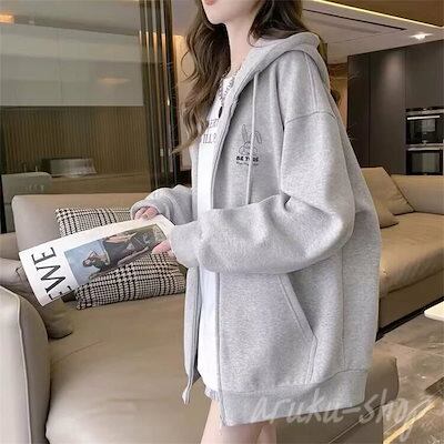 オーバーサイズ レディース パーカー ジップアップパーカー アウター 大人可愛 長袖 ゆったり フーディ ジップパーカー ビッグシルエットパーカー 春 ロング丈 フード付き カジュアル 体型カバー 着