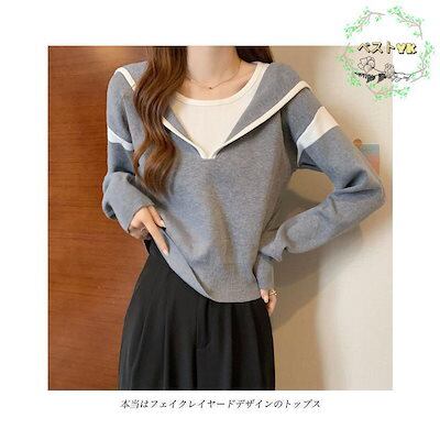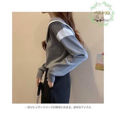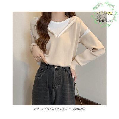 ニットパーカー レディース ニットセーター フード有り ニット フェイクレイヤード セーター プルオーバー ニットトップス きめ細かい 長袖 重ね着風